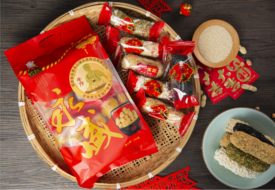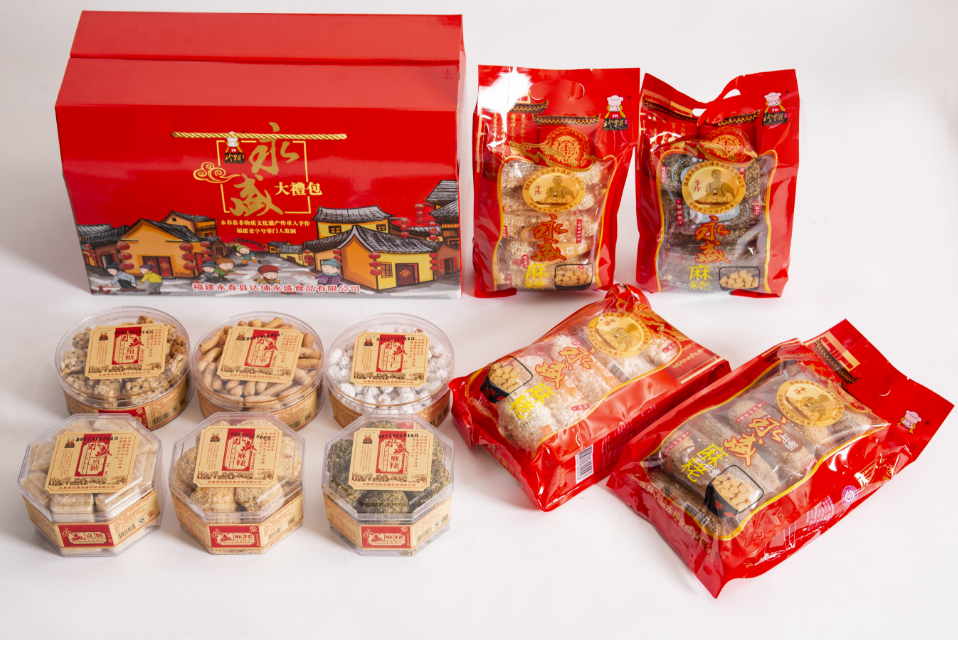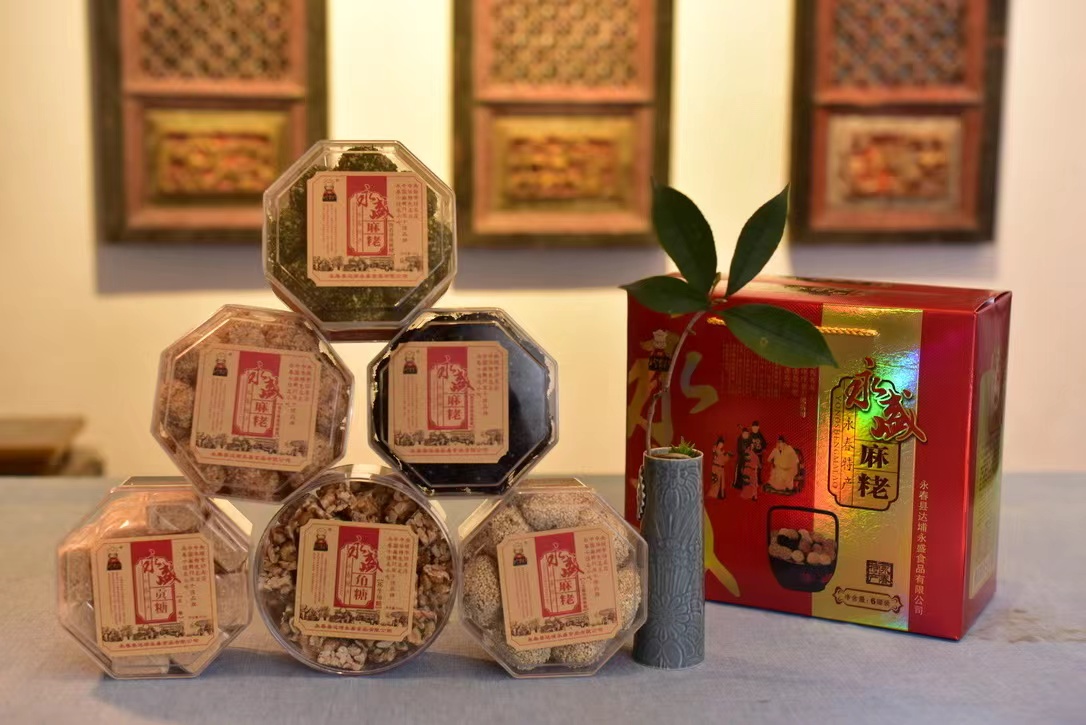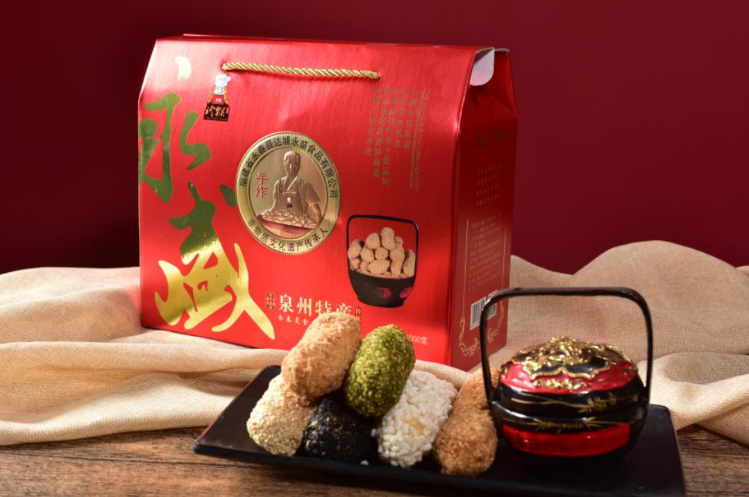 永春縣達埔永盛食品公(gong)司(si)除生(sheng)產(chan)麻粩外(wai),兼(jian)營粩花、寸(cun)棗、角(jiao)糖(tang)、花生(sheng)糖(tang)、生(sheng)仁糖(tang)、桔紅糕、金(jin)桔、大桔及(ji)各(ge)種餅類等(deng)(deng)系列特色(se)(se)產(chan)品,榮獲中(zhong)國麻粩十(shi)佳品牌、中(zhong)華特色(se)(se)名點、永春十(shi)佳名小(xiao)吃等(deng)(deng)榮譽。其產(chan)品可通過電話、網絡(luo)訂購(gou)。 |